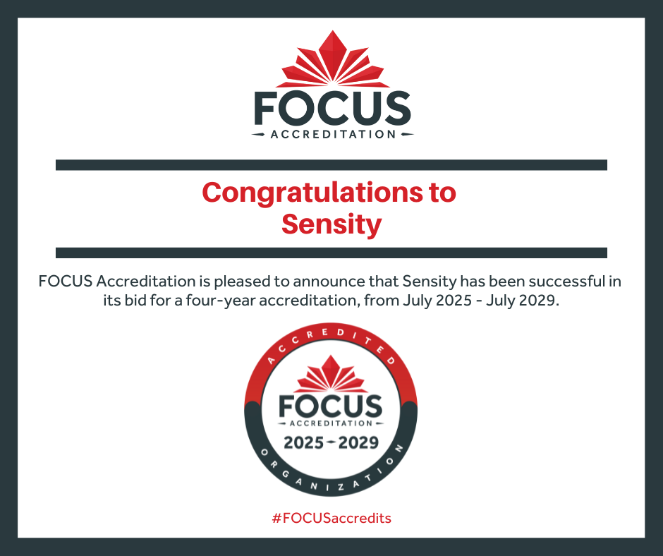 The Deafblind and Sensory Support Network of Canada (Sensity) has achieved a four-year accreditation, valid from July 2025 to July 2029 from FOCUS Accreditation. The organization received an overall rating of 99.28%—an exceptional achievement. Sensity is FOCUS’ highest-rated first-time organization under the entire 2020+ series of Standards and is also the first deafblind organization to receive accreditation within this series.